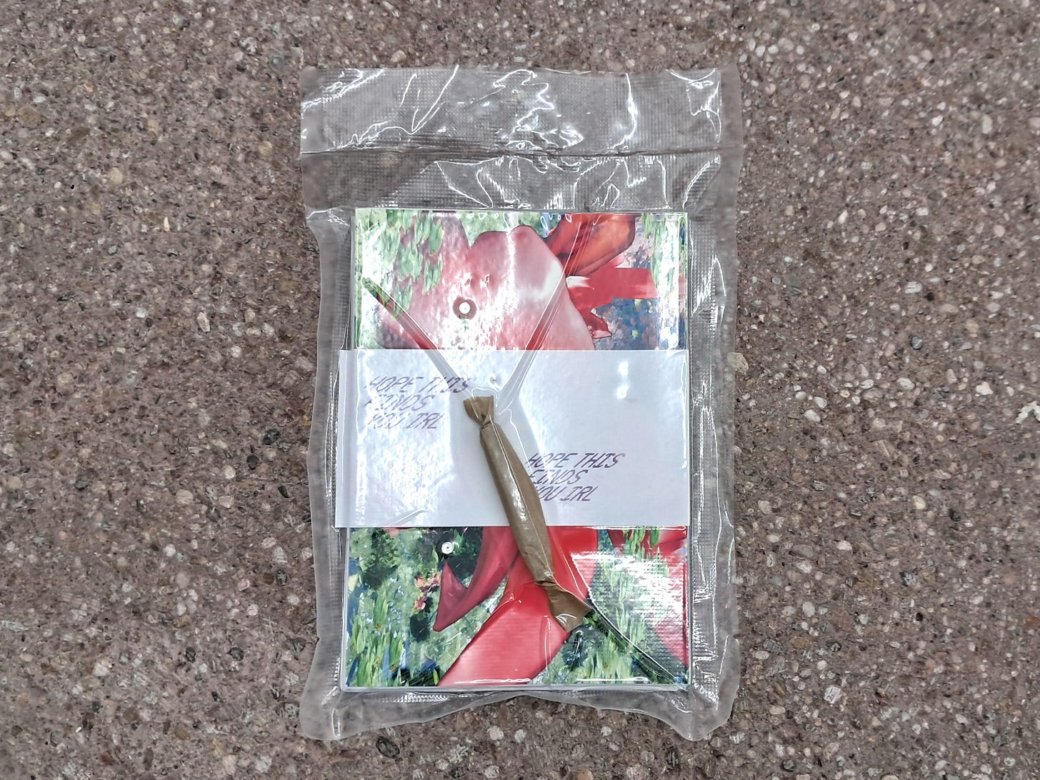 Edition: Hope this finds you IRLPublication made on occasion of the exhibition of the same name.May 24, 2025Share@areamancaArea Manca on Instagram: "*Hope this finds you IRL*Art Interve…Edition, front.Edition, back.Edition of 50.